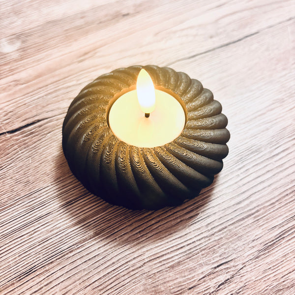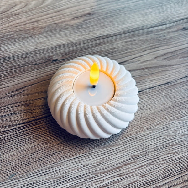 Oppdag vår søte 3D-printede telysholder! Med en diameter på 9 cm og en høyde på ca. 2 cm, har den fine, elegante nordiske former som passer perfekt til å skape stemning i hjemmet ditt. Telysholderen kan også fås i flere flotte farger, slik at du kan velge den som passer best til din stil. Perfekt som en liten gave eller for å pynte opp i ethvert rom!